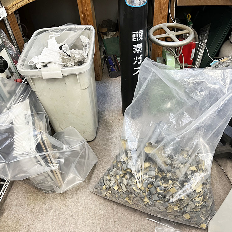 貴金属の加工により研磨屑やバフ研磨粉、サンドペーパー、集塵機のフィルターなどが大量に蓄積いたします。