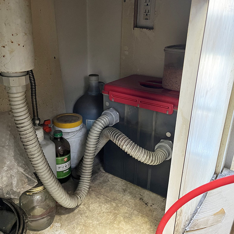 なかでも4月は手洗いシンクの下にセットしている排水沈殿槽を外して掃除回収をいたします。