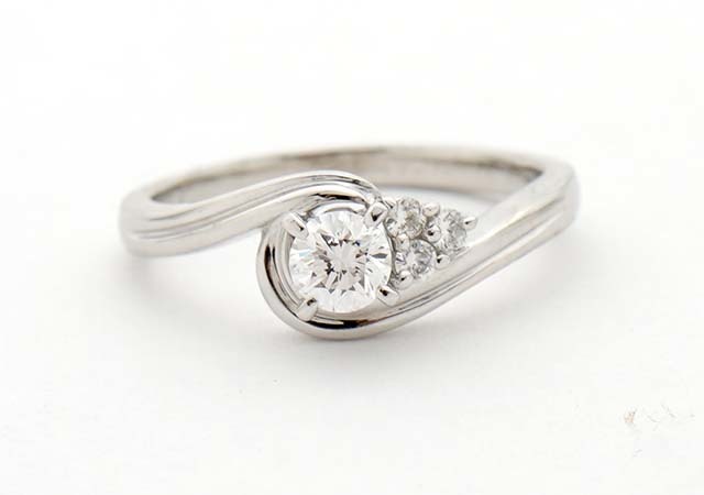 お持ち込みいただいいたのは、0.27ctのダイヤモンドをひねりながらセットしてあるプラチナの指輪。