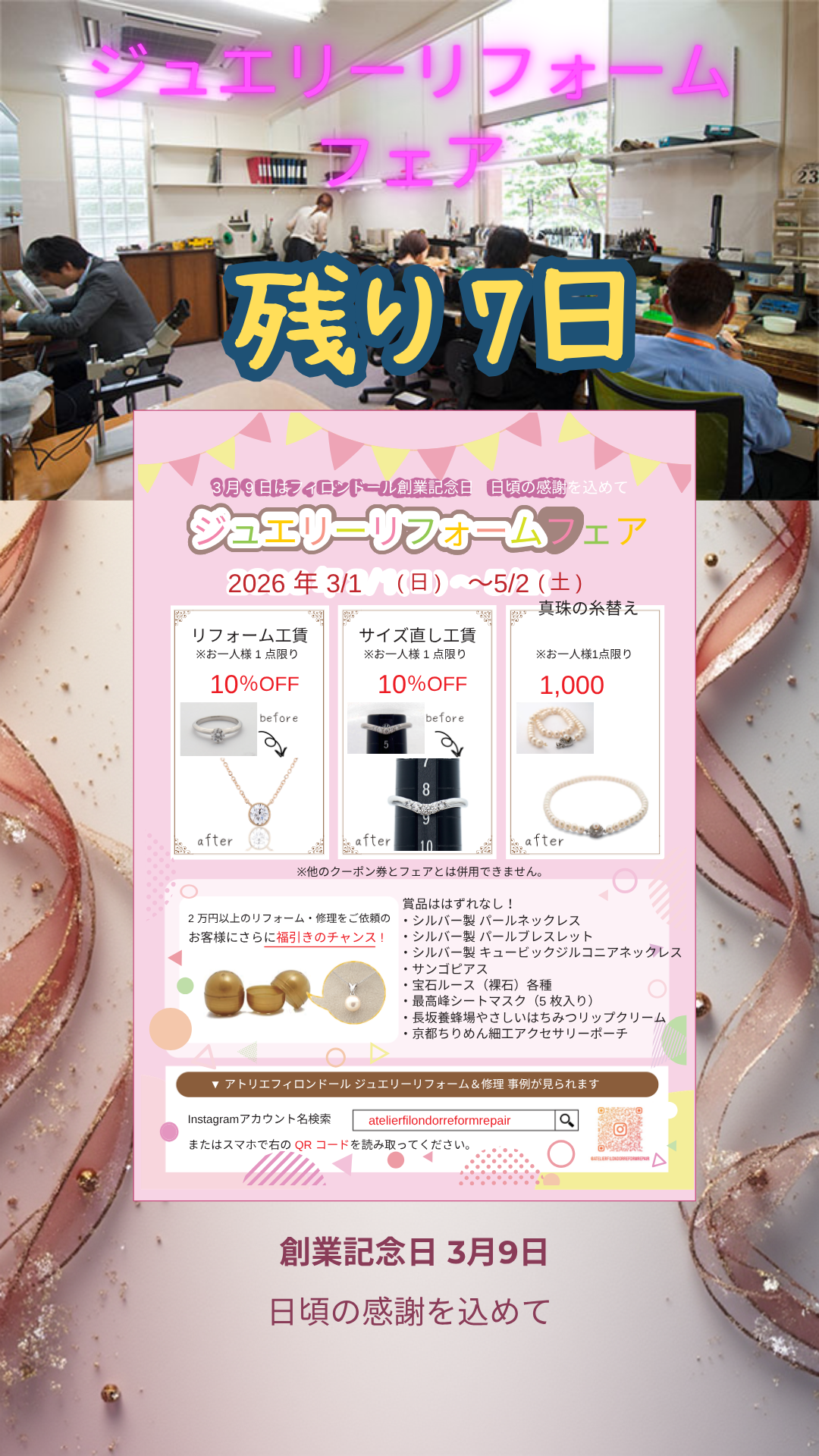 アトリエフィロンドール2026春のリフォームフェア 5/2まで好評開催中です。