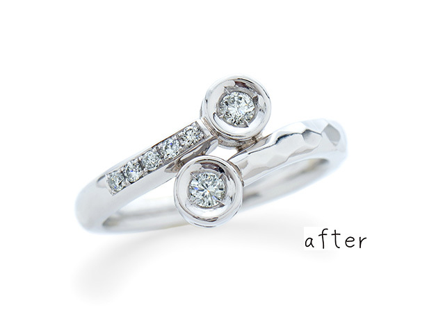 5石のメレダイヤモンドとハンマーテクスチャーで煌めきをプラスして華やかな印象になりました。