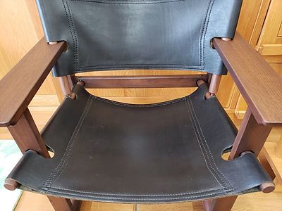 座面と背面の牛革(ブラック)は、