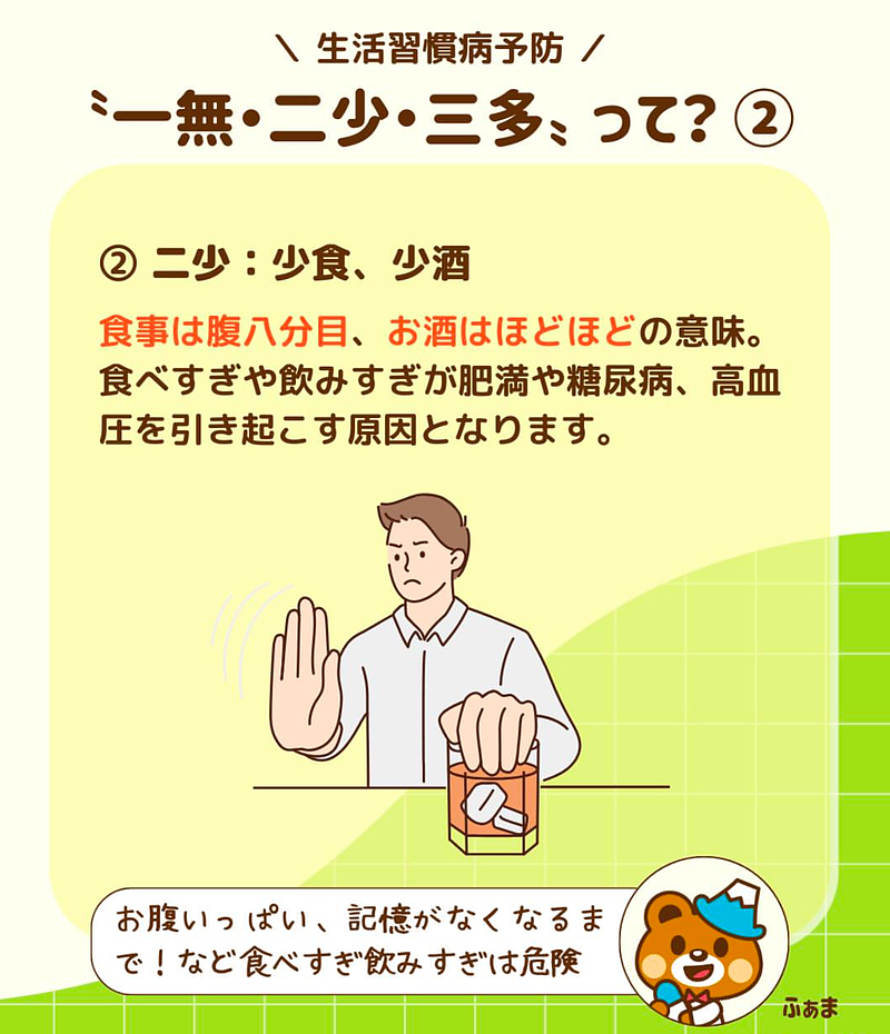 また食べ過ぎにも気をつけなければなりません。私もラーメンなどは好きですが、過度の塩分摂取はガン因子ともなりますし、高血糖や脂質異常症などを引き起こすことがあります。