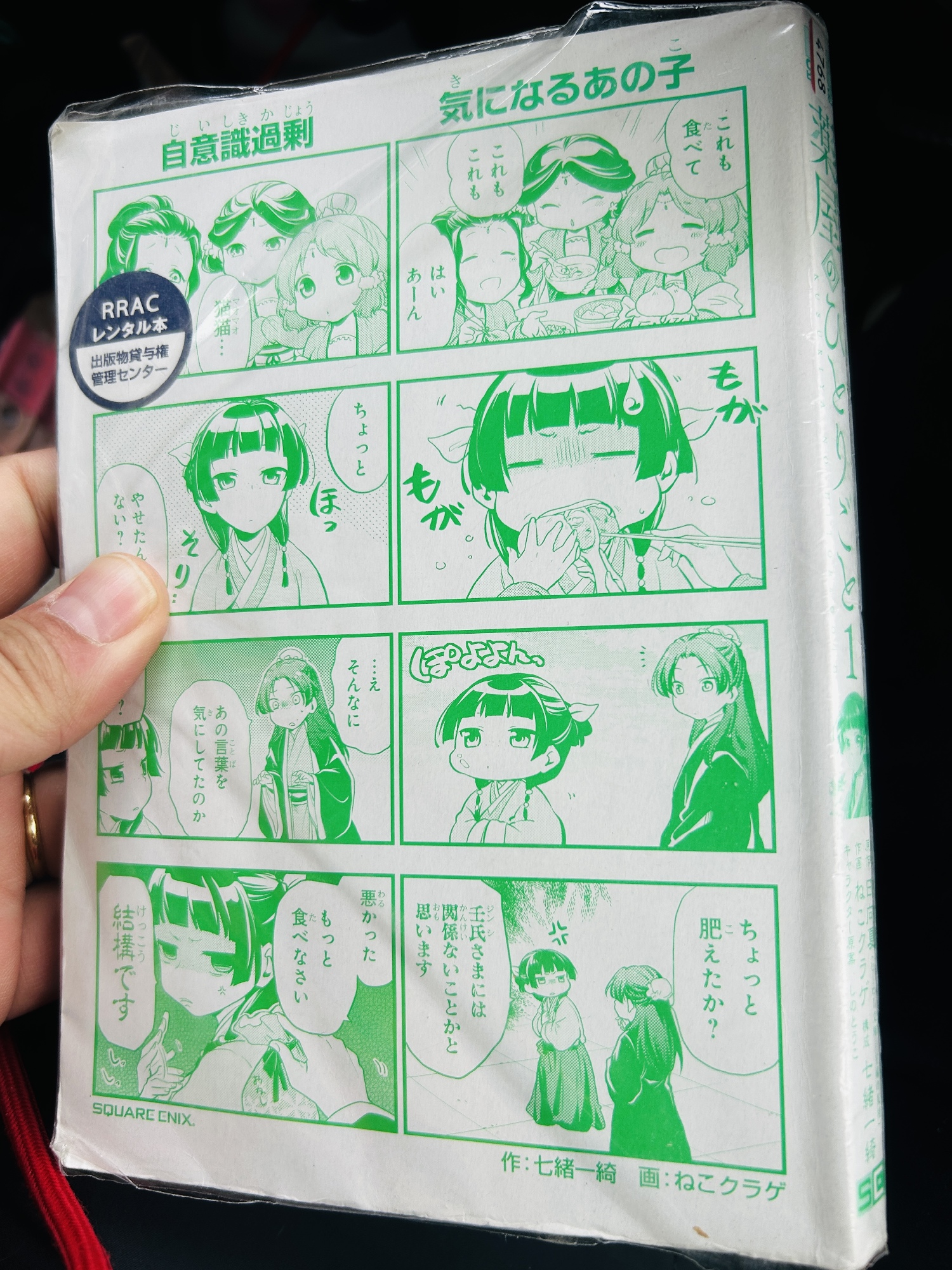 …That said, as you may have already noticed from my tone, I’m not particularly into anime or manga. But given how popular this one is, even I found myself curious. I promptly went to the rental store and borrowed Volume 1 of The Apothecary Diaries.
