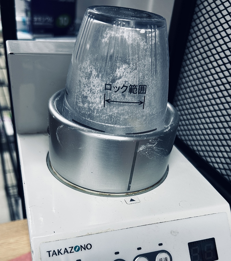 しかし多くの場合、粉砕には、特殊な粉砕機を用いています。ボタンひとつで粉砕してくれます。