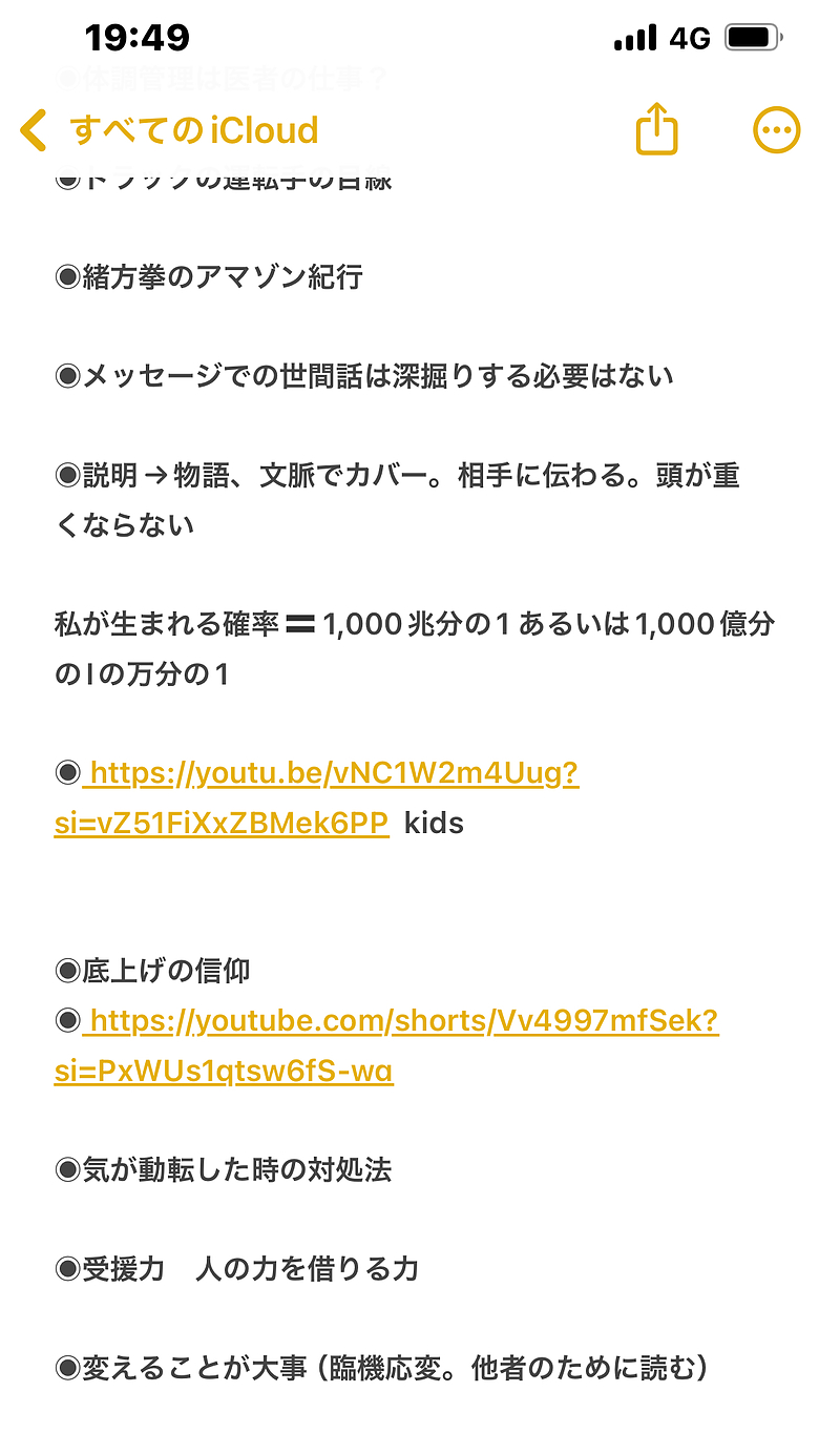 自分が考えたことを紙やノートにメモることを以前はしていましたが、今は、テーマ、疑問文、思いつきの言葉をスマホのメモ帳にランダムに書き留めて、時間のある時にそれを見返すと、自分が思ったこと、感じたことを想起することができます。