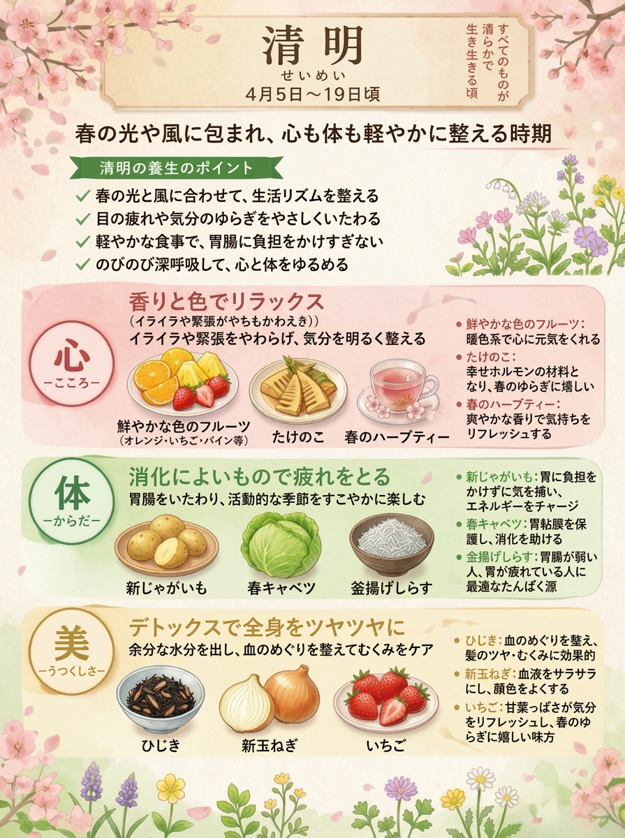 清明のころの食卓には、心・体・美をやさしく整えるヒントがたくさんあります。