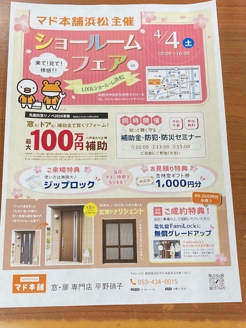 【イベント情報】お得な特典盛りだくさん!玄関ドア交換をご検討の方は、チラシを印刷してぜひお越しください。