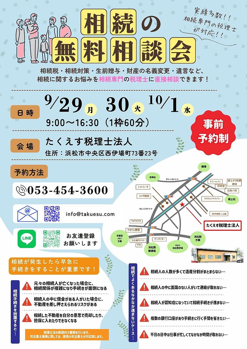 この度、たくえす税理士法人は無料相談会を開催いたします。