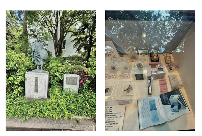 薬剤師木村が、武蔵野大学薬学部に訪問いたしました。様々な豊かな木々に囲まれていて、とても落ち着いた空間でした。前身の武蔵野女子大学からの歴史ある大学で、鎌倉仏教の一つ、浄土真宗の宗祖とされる親鸞像が出迎えてくれました。右手に杖、左手に菅笠、小さく踏み出した足には簡素な草鞋。20年近く過ごした関東から故郷の京都へ帰る旅立ちをイメージした像なのだそうです。凜としたまなざしは、見ていると身が引き締まります。