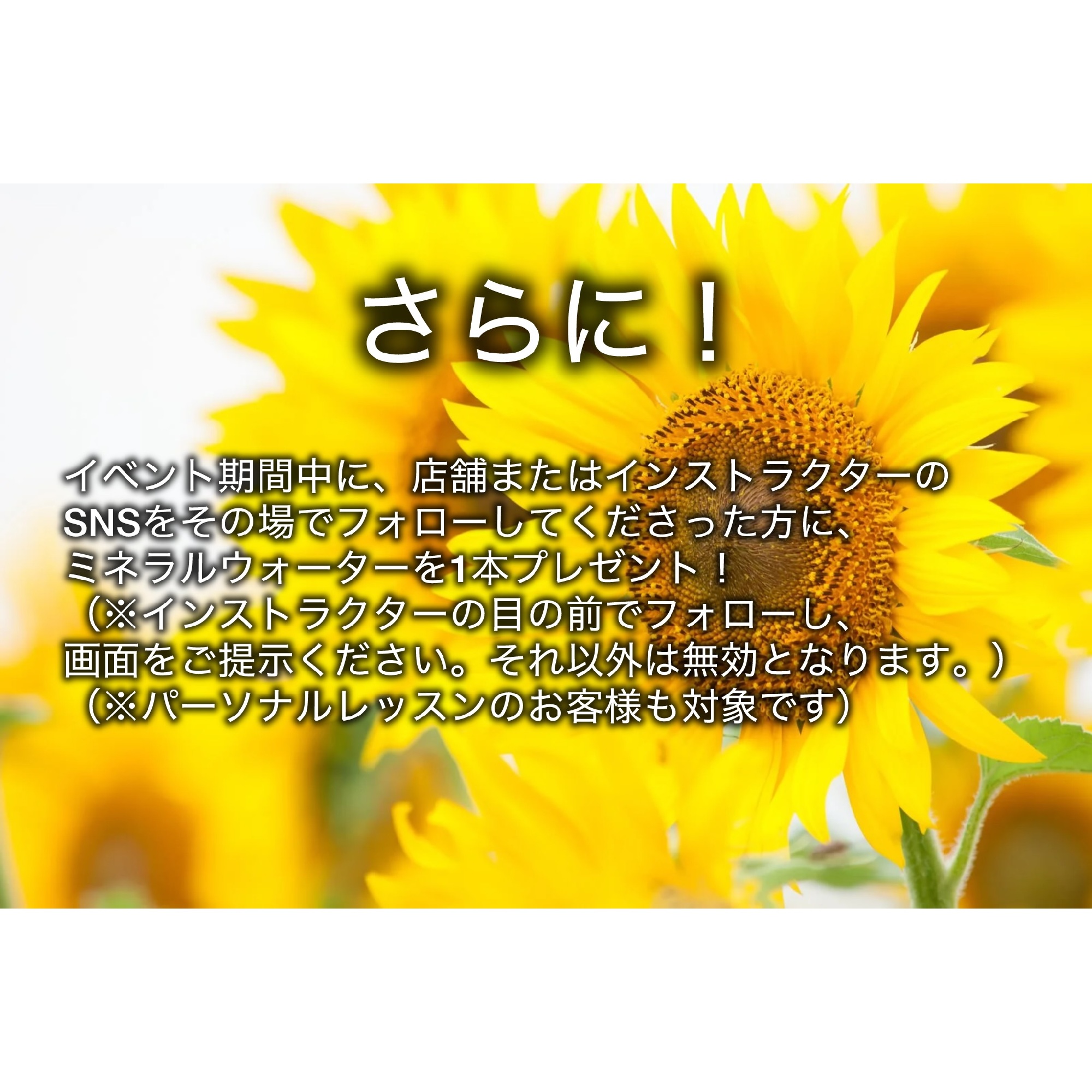 イベント期間中に、店舗またはインストラクターのSNSをその場でフォローしてくださった方に、ミネラルウォーターをプレゼント