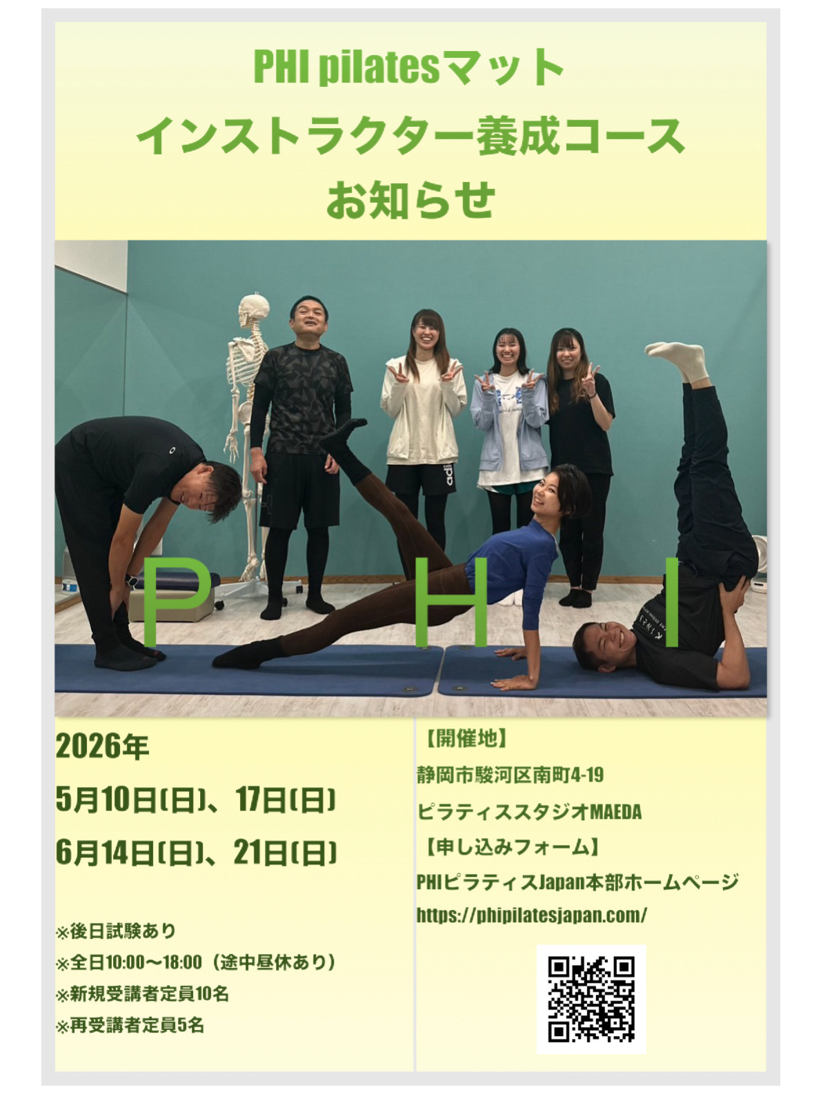 PHIピラティスマット養成コース のお知らせです。