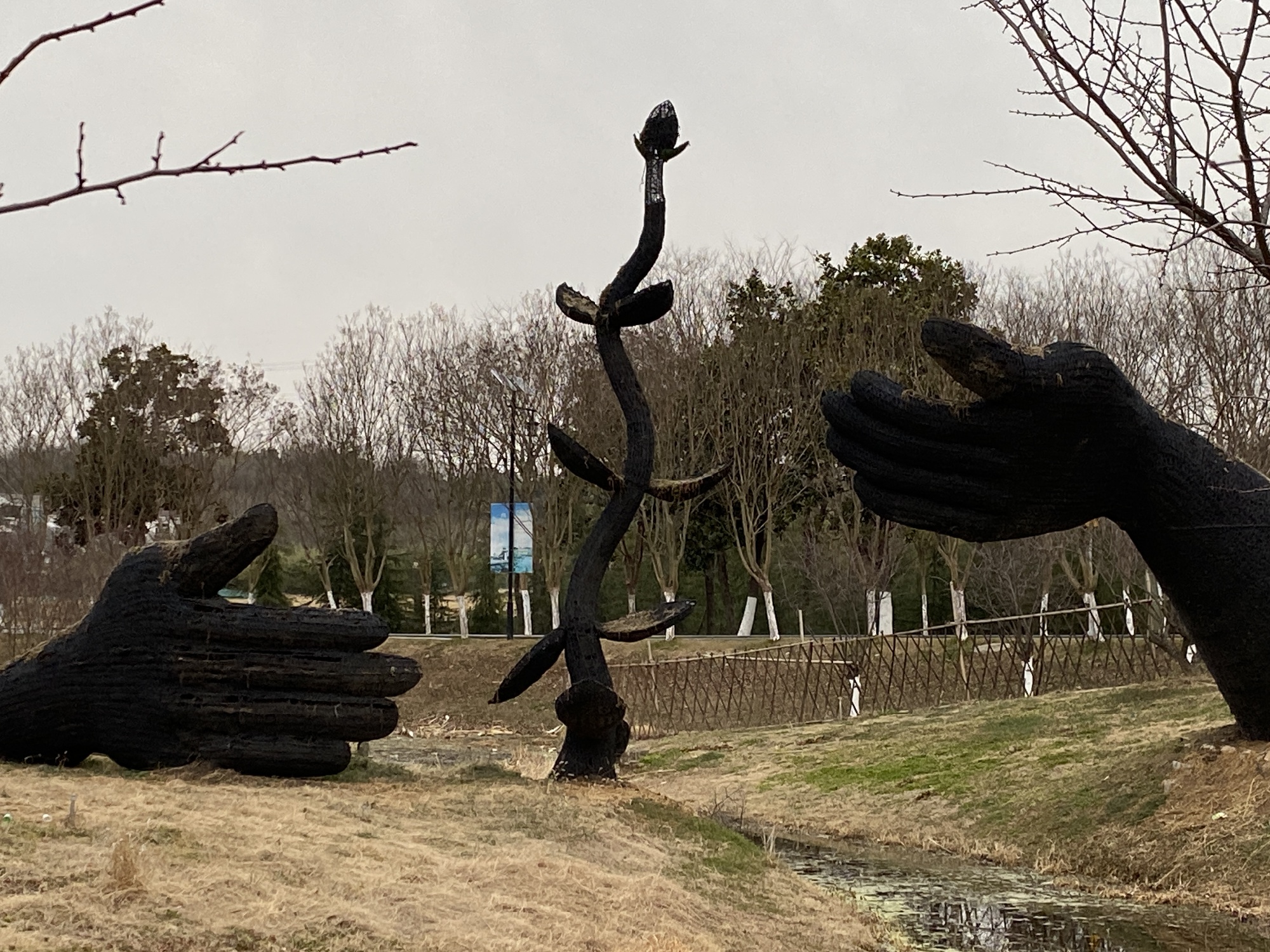 中国の生徒さんが梅の木から枝を切って生け花にしました。