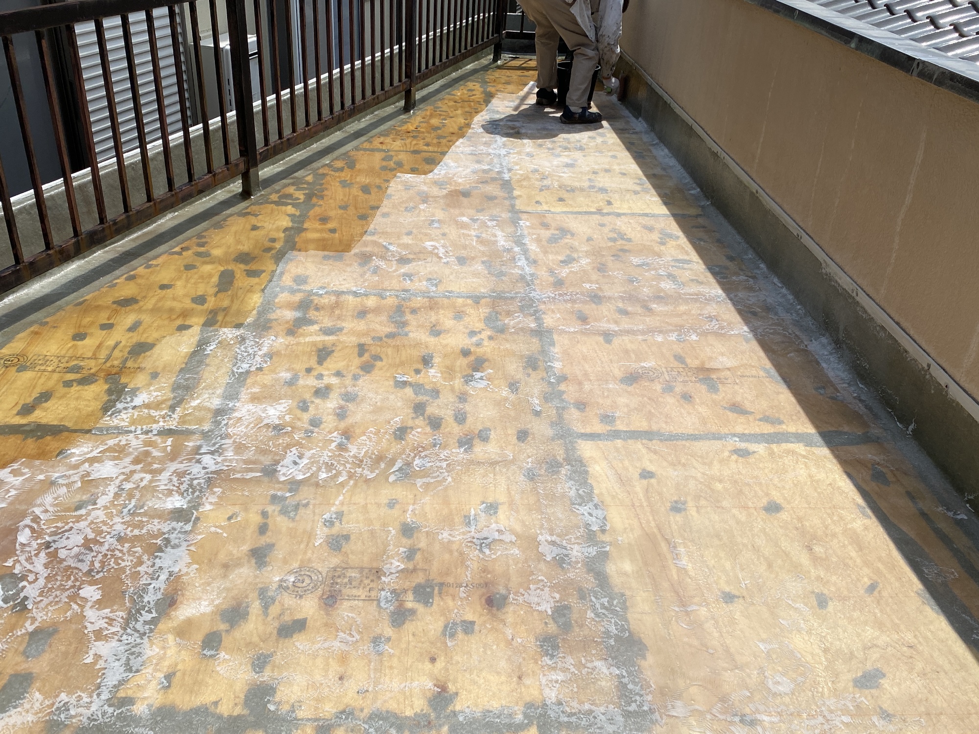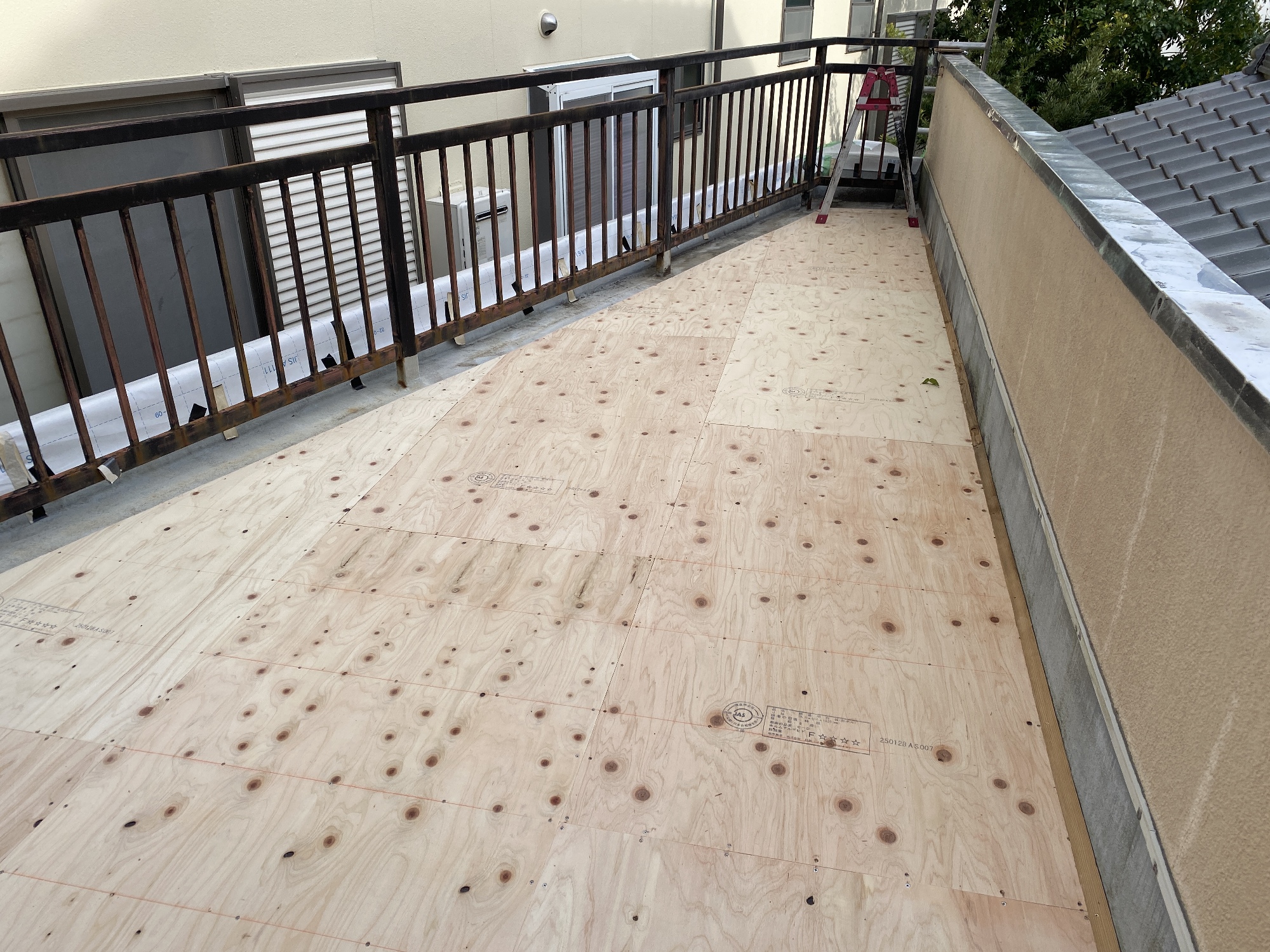 その上に新しい合板を貼り、新たな防水下地を作りました。