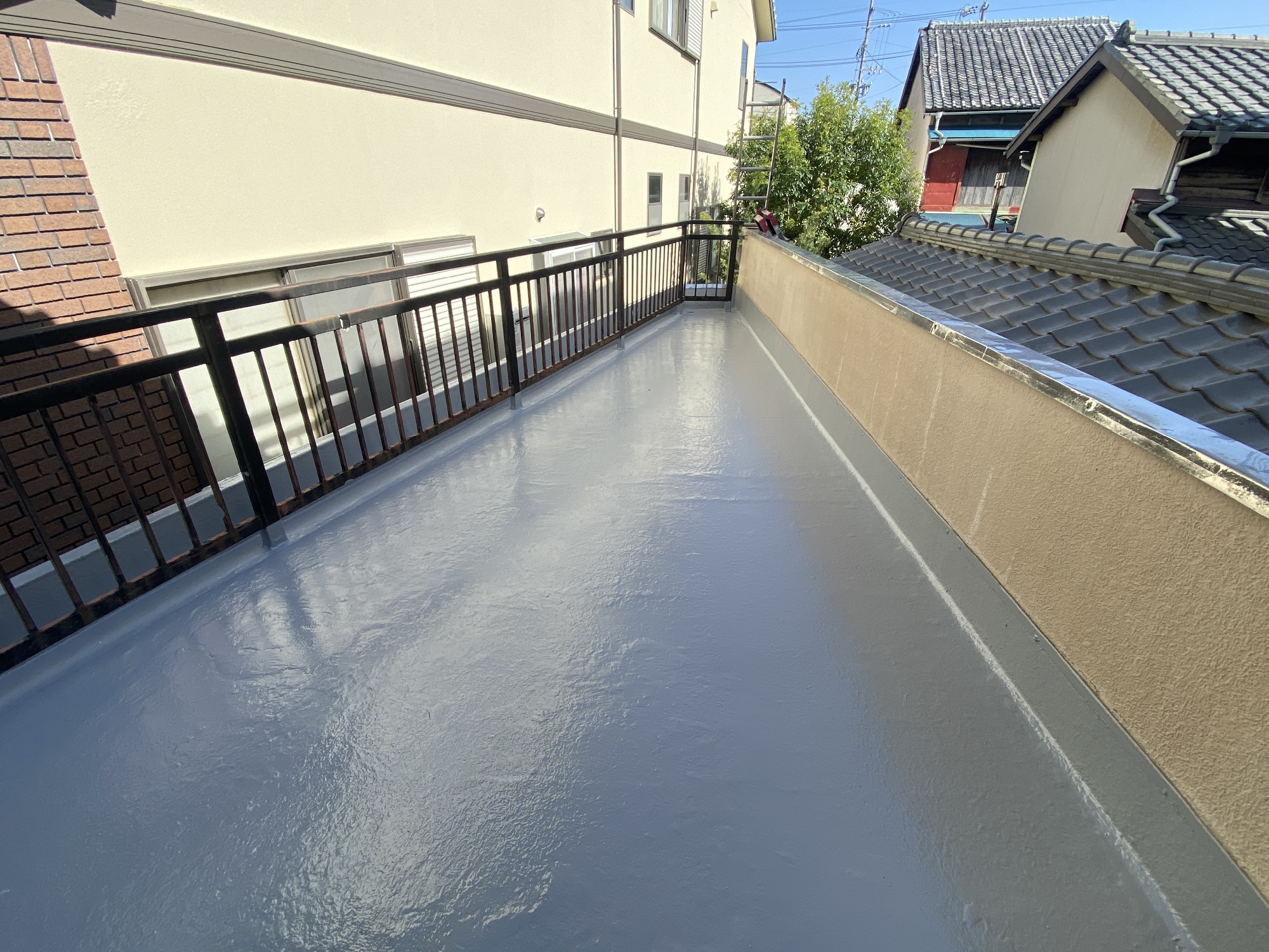 その上にFRP防水をかけ仕上げ塗装をして、笠木を板金で伏せました。