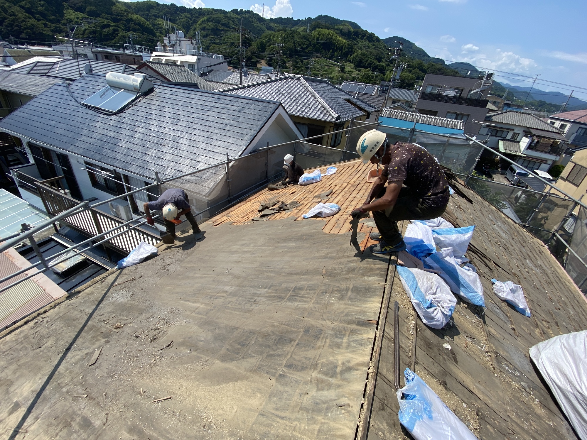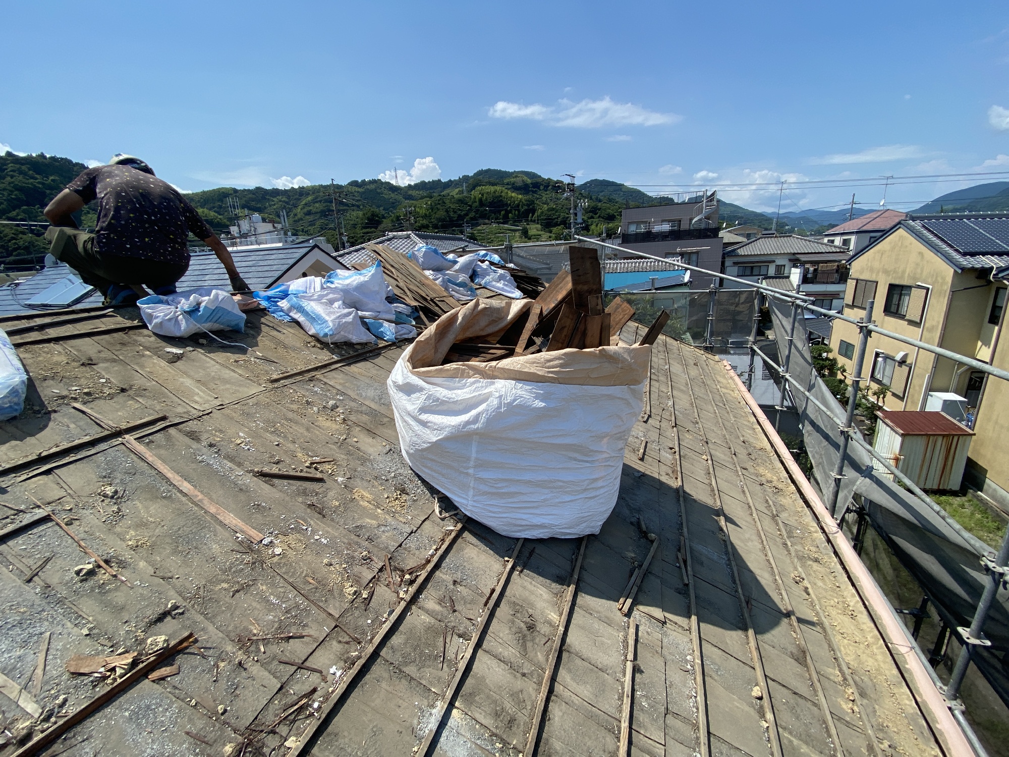 この状態から改めて新しい野地合板を貼り板金下地を作ります。