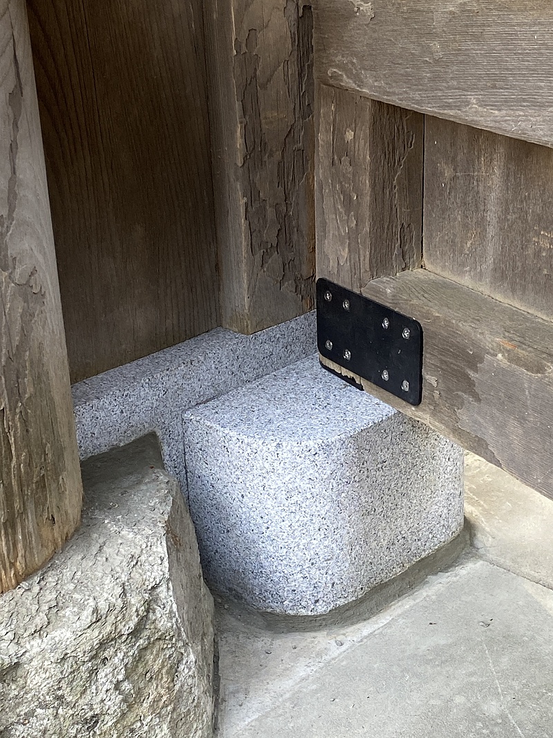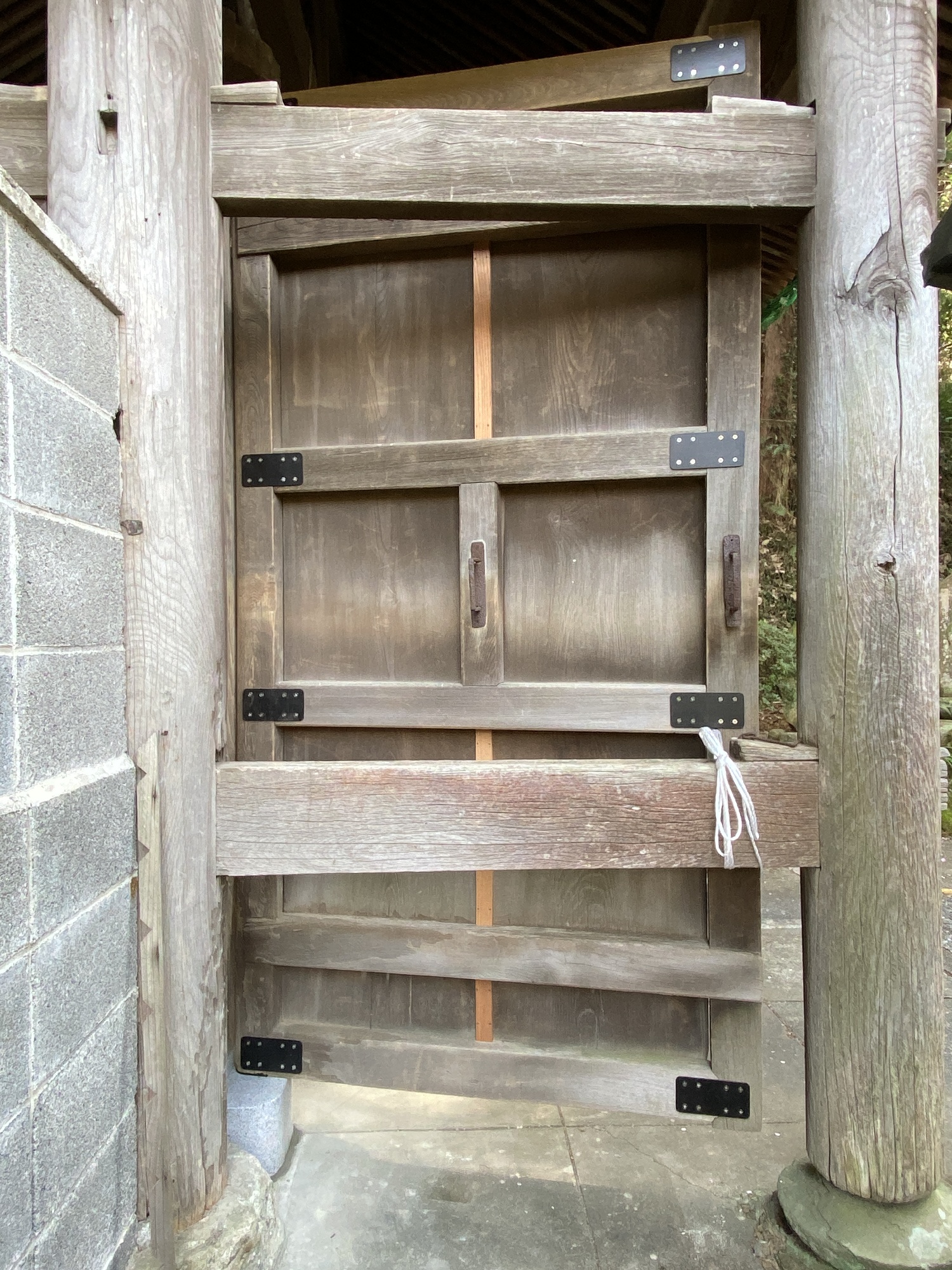 裏へ廻ると新しく作った金物で扉をがっしりと補強してあります。