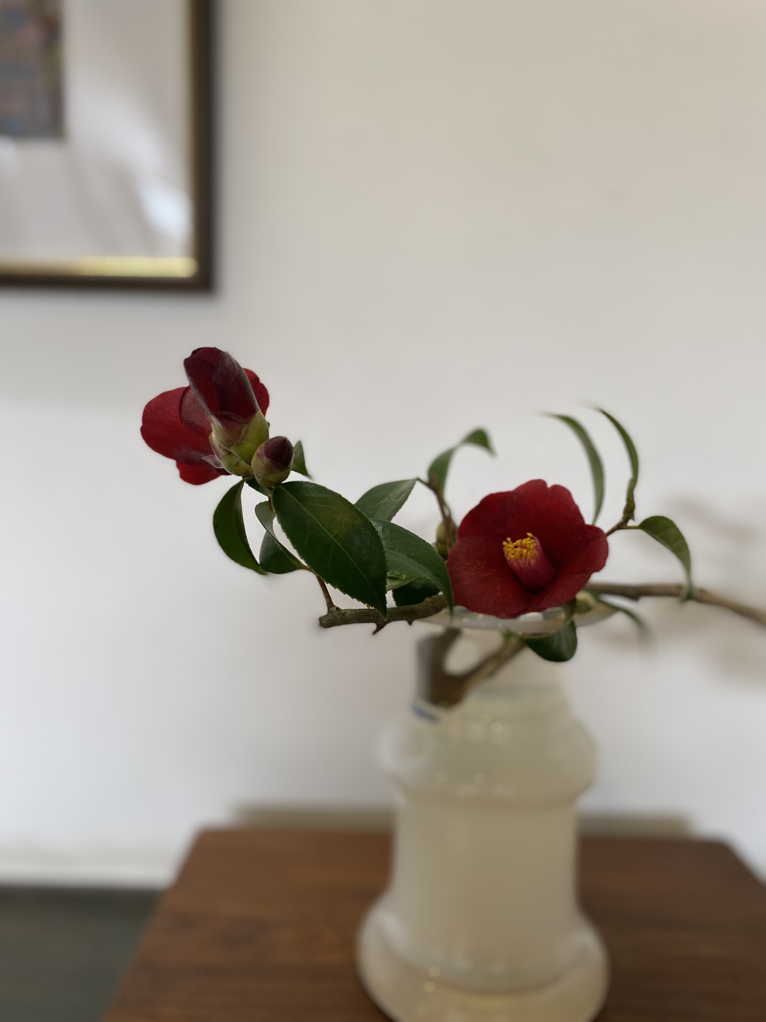 ヨーロッパとアジアの接点に花開いたボラポラスの花器に赤い椿が映える。