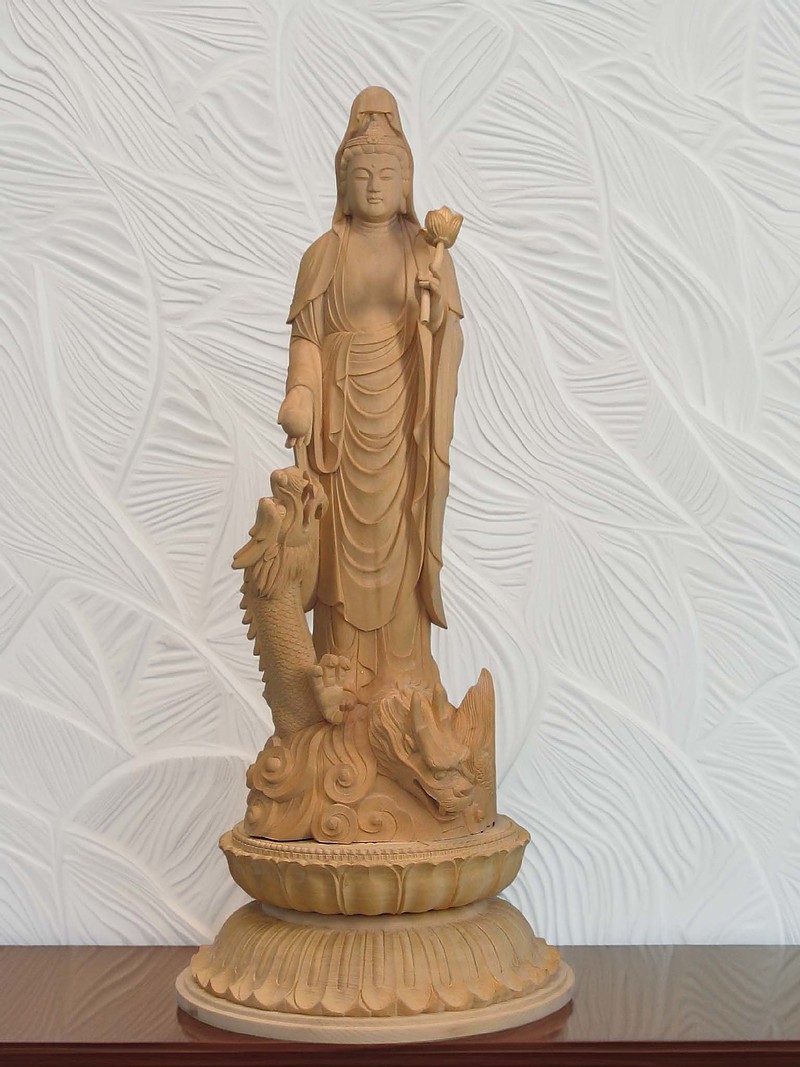 昇竜観音(しょうりゅうかんのん)は、慈悲深き観音菩薩が、天に昇る龍とともに立つお姿で表された尊像です。