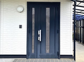 浜松市南区のお宅で、長年の風雨にさらされたため色があせてきた玄関ドアを