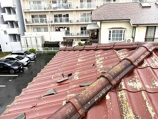浜松市中央区のお宅で、屋根のスレート瓦が飛散物で破損しているので、軽量で地震に強く