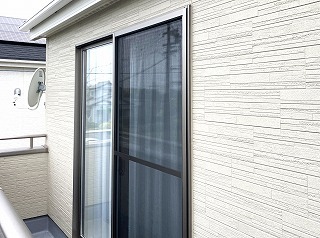 浜松市中央区のお宅で、2階のバルコニーにある2ヶ所の掃き出し窓サッシに雨戸が