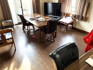 浜松市中央区のお宅で、LDKの床のフローリングをカバー工法で張り替え、壁と天井のクロスも