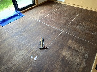 既存の合板ははめくって新しい耐水合板に張り替えた和室の荒床。この後畳を入れます。