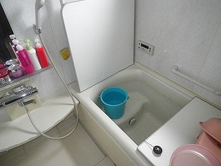 2階の浴室に設置してある取り替えリフォーム前の、古くなったユニットバス。
