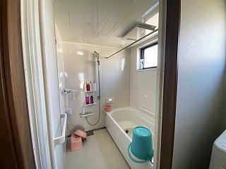 最新型のシステムバスに取り替えた、リフォーム後の浴室。窓はそのままです。