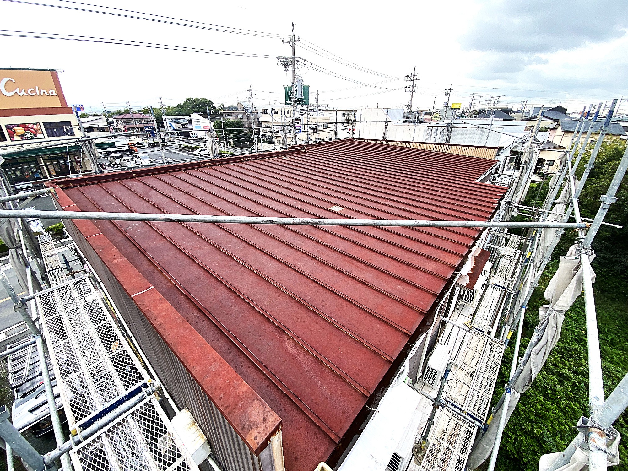浜松市中央区のお宅で、板金の桟葺き屋根の錆がひどく穴が開いて雨漏りがするので