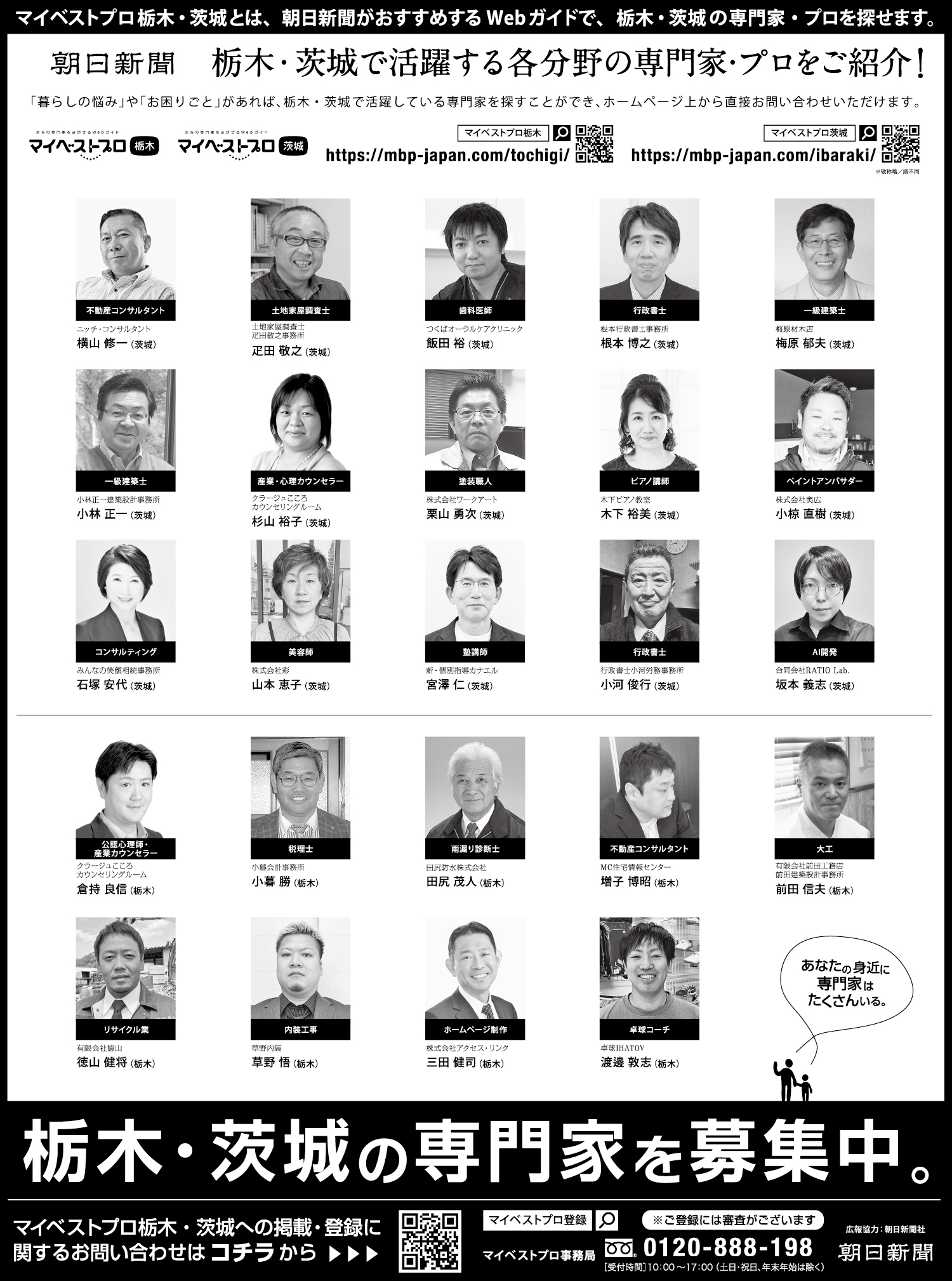 2026年3月29日(日)朝日新聞に「マイベストプロ栃木」の顔写真付き新聞広告が掲載されました!