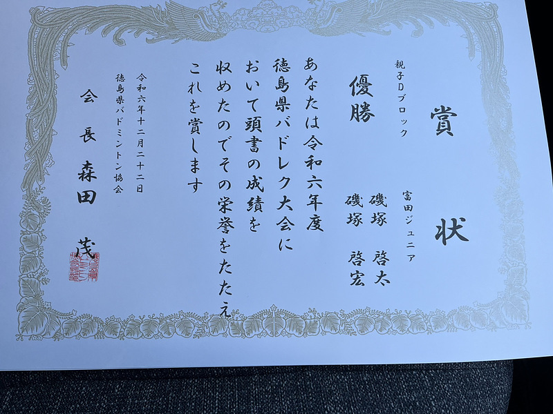 この大会で賞状を貰ったのが嬉しかったのか、最近の練習では多少身が入っているように感じました。