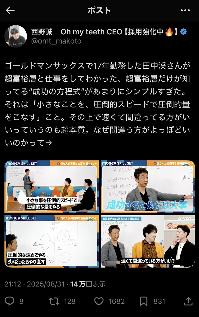 下記の田中さんは世界一の投資銀行で働いており、何万社の企業をリサーチ後に投資し、何千人もの経営者と深く話をしてきた人です。