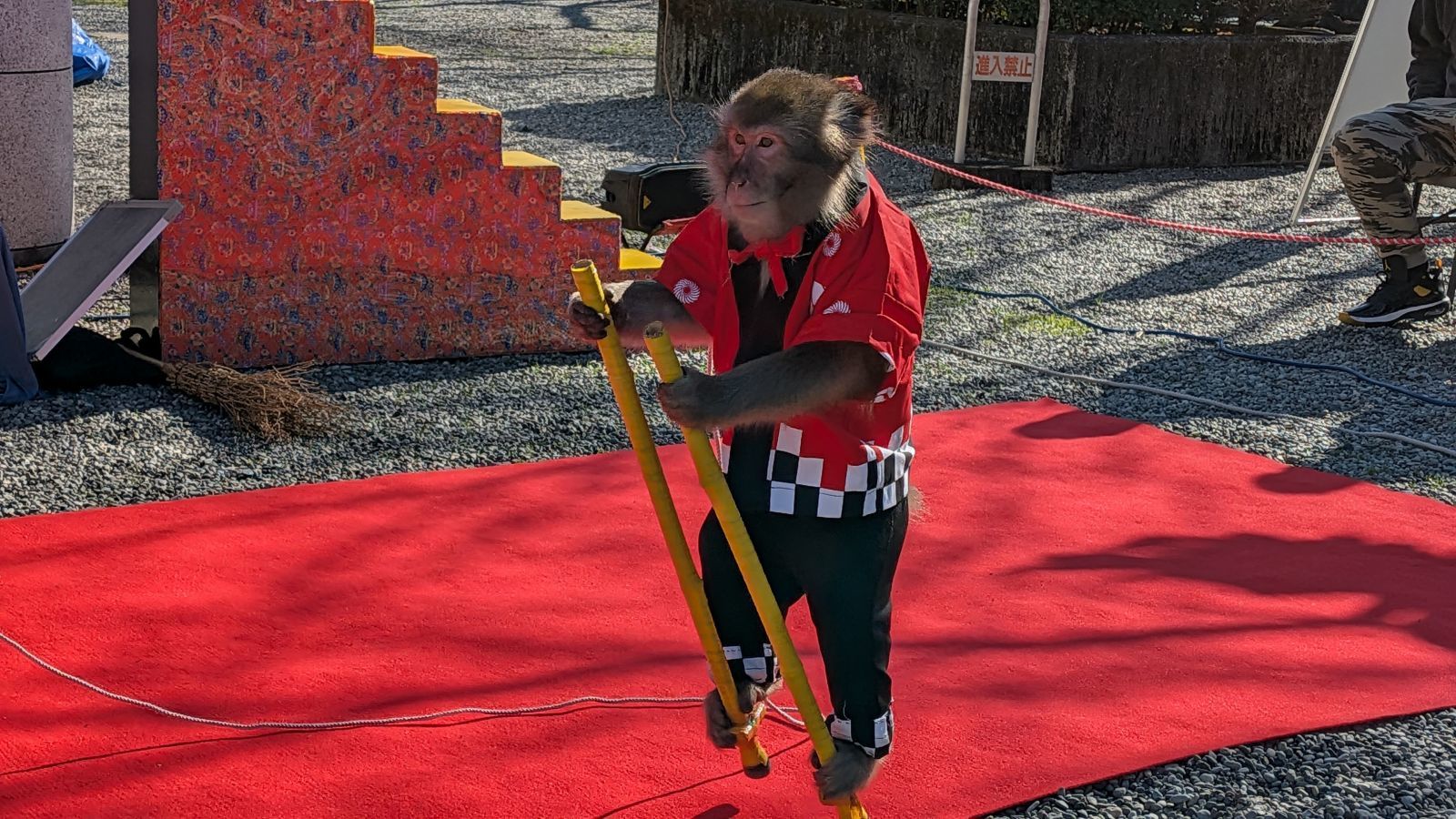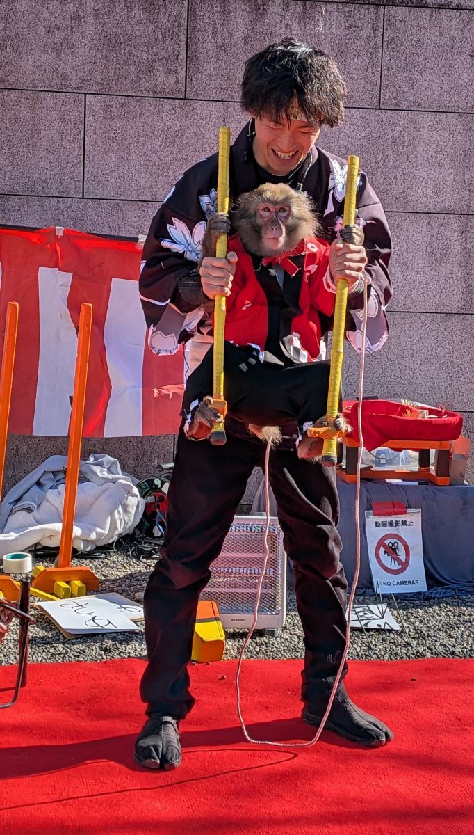 ここの大鳥居下で、日光さる軍団による