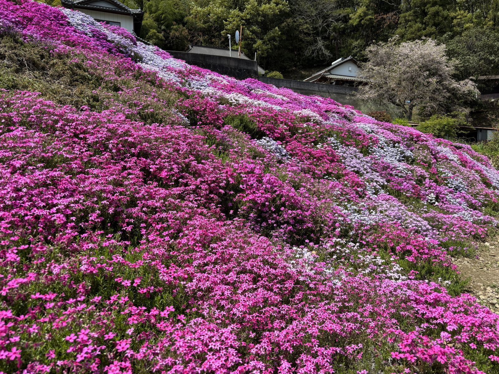 間違ったのかと思うほど、細い道を上がって行くと満開の芝桜(⋈◍>◡<◍)。✧♡