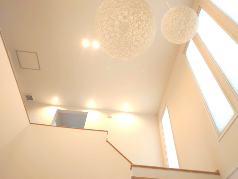 また、先ほどのようにリビングと2階ホールは一体空間なので、できる限り2階ホールの面積を小さくしておくこともリビングをスピーディに暖める為に有効です。