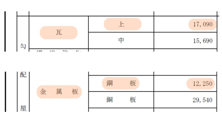 そして、最近使用することが多い、ガルバリウムの屋根なら12,250点です。