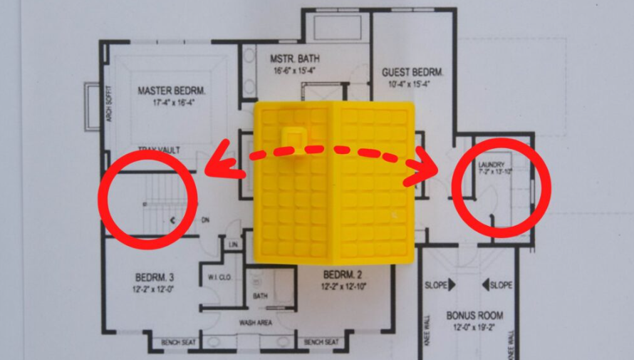 これは階段が関係するので、2階建てや3階建ての場合ですが、階段と水回り、特に洗面や浴室の位置が、平面上で端と端の配置になってしまっているということです。