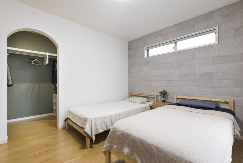 例えば、2階の設計の場合、階段ホールに近い位置に小さな子供部屋やウォークインクローゼットを配置して、階段から遠い位置に広い主寝室を配置することで、2階の廊下を最小面積に近づけることができます。