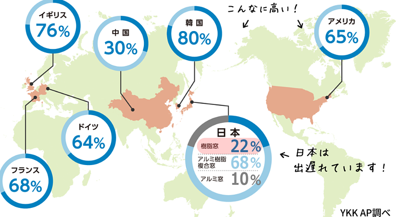 世界でも省エネの観点から、標準的に使用されていますが、日本での採用率はご覧の通りまだまだ低くなっています。
