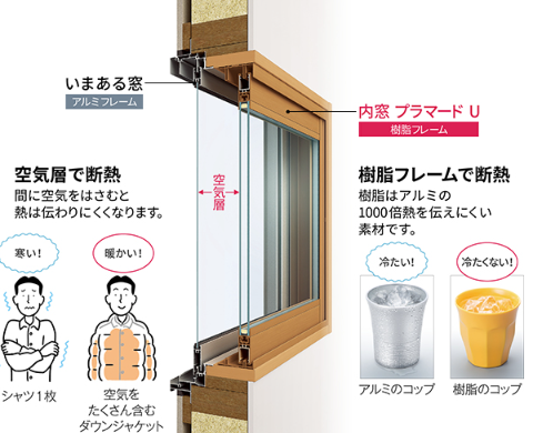 組み合わせによれば、既存の窓がアルミサッシだったとしても、樹脂サッシの性能を超えることも十分に可能です。