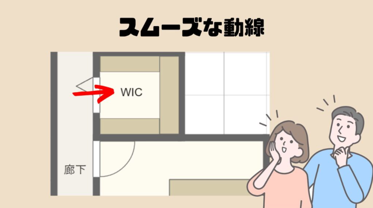 加えてウォークインクローゼットは、大きな荷物を入れられることもできますから、そういった大きな荷物の出し入れは動線が悪いと不便ですよね。