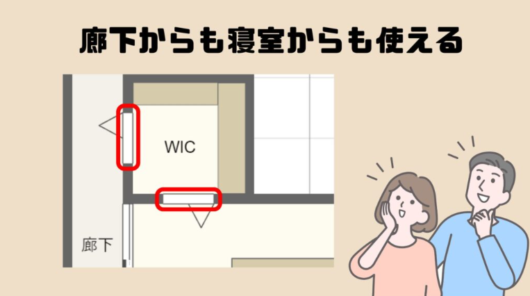 それは、ウォークインクローゼットの入口を、廊下に設けるという方法です。
