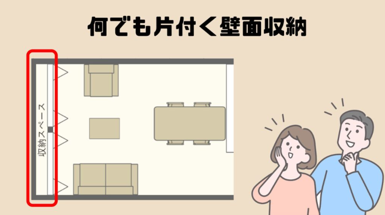3つ目は、壁面にTVを設置する必要がなくなると、LDKの収納不足が一気に解決するからです。
