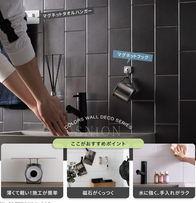 そして、コンロから少し離れた位置に施工する場合は、こちらのSNiON(シニオン)もおすすめです。