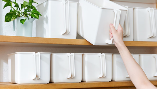 こういった理由から、棚1段の高さに対して、多少余裕を持った収納ケースを使用する方が、普段使いしやすいと思います。