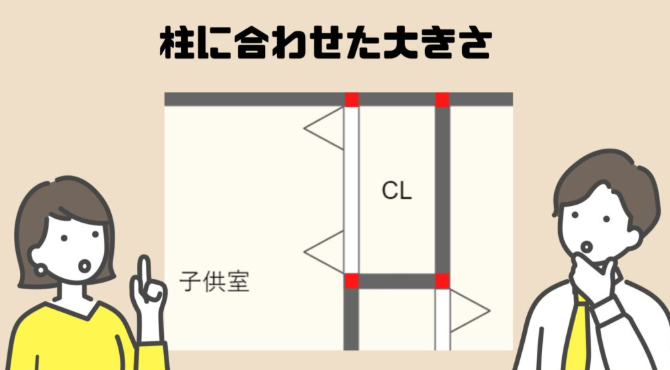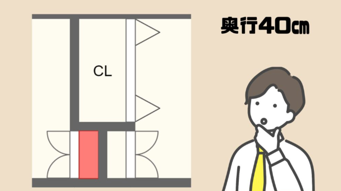 また、柱と柱の奥行きに対して、ちょうど半分で収納を設ける場合もありますが、その場合は40㎝ほどですから、クローゼットとしては浅いですし、パントリーの収納としては深すぎます。