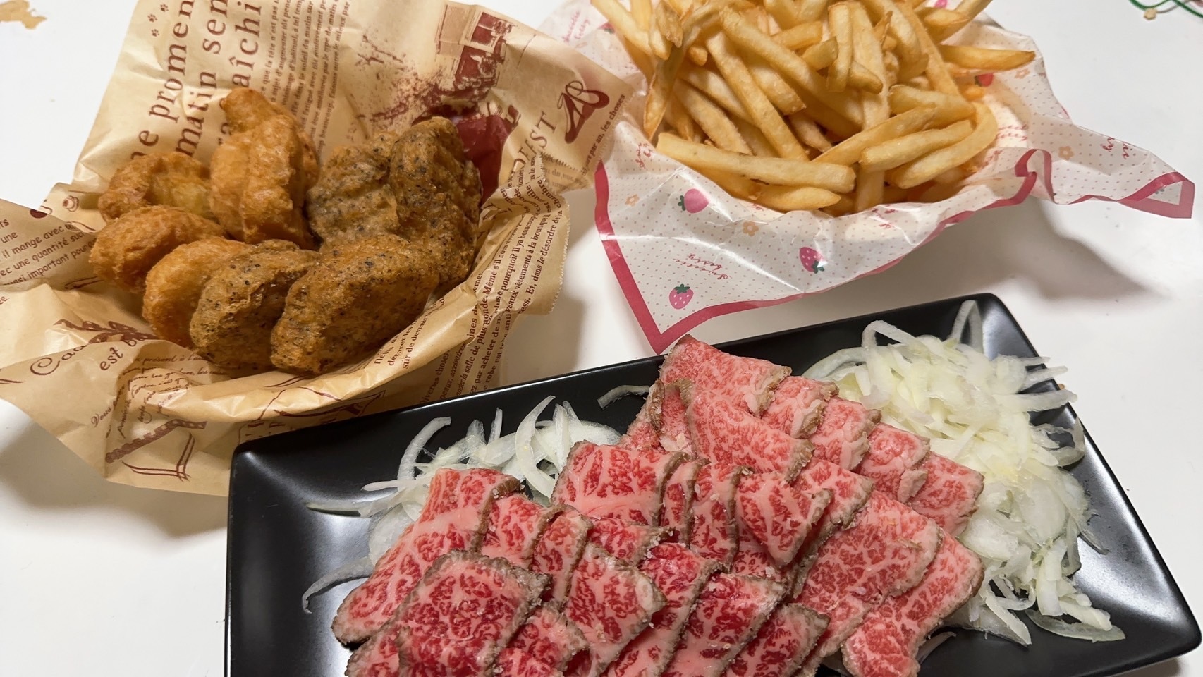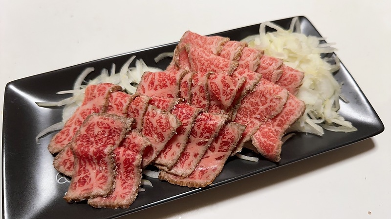 当日は息子の大好物の和牛のタタキを用意しました(^_-)-☆