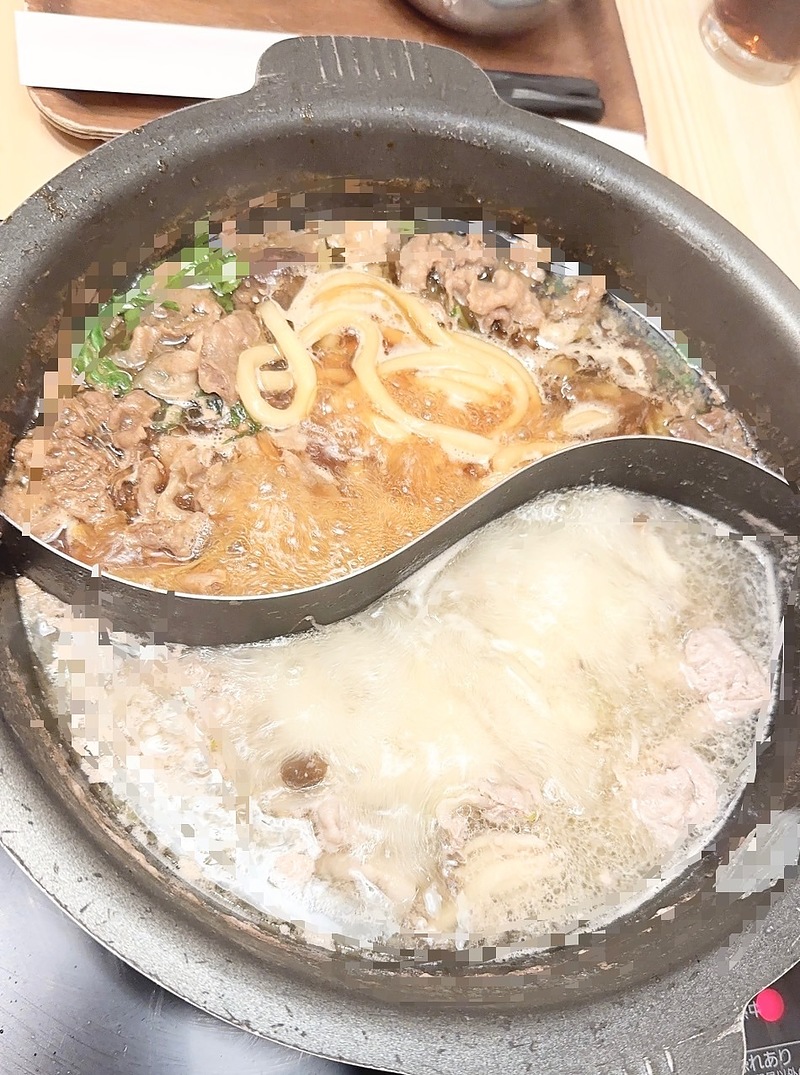 息子がいる席は、もちろん④のすき焼き風だし!!!